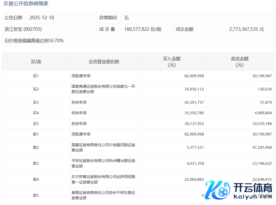 浙江世宝本日涨停 3家机构专用席位净买入9250.26万元开yun体育网浙江世宝本日涨停 3家机构专用席位净买入9250.26万元