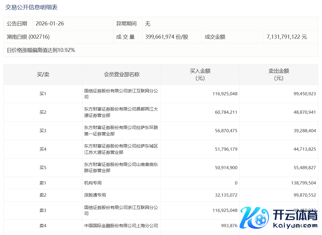 湖南白银本日涨停,有1家机构专用席位净卖出1.39亿元湖南白银本日涨停,有1家机构专用席位净卖出1.39亿元