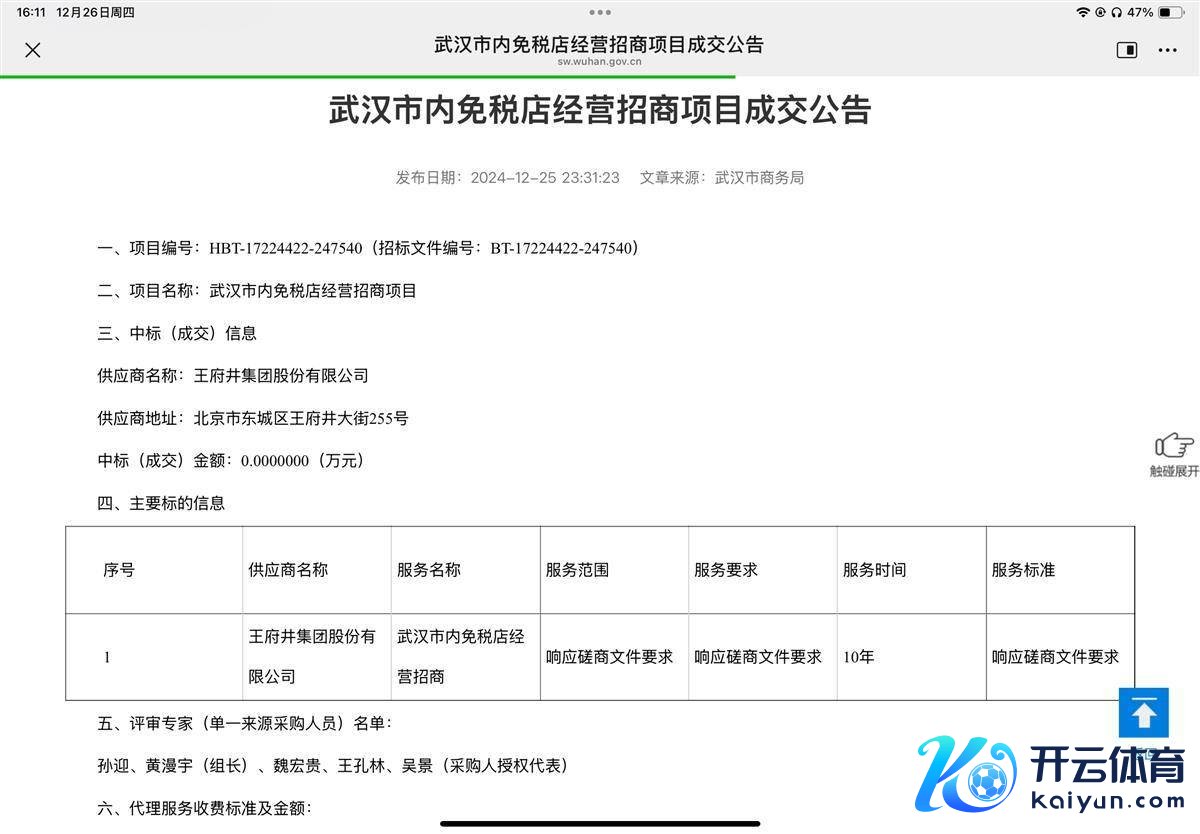 湖北日报讯(记者肖丽琼)备受矜恤的武汉首家市内免税店落户武商集团(000501)。12月25昼夜间,武汉市商务局发布公告称,武汉市内免税店谋略招商面目由王府井(600859)集团股份有限公司中标。26日下昼,武商集团(SZ000501)发布公告称,将与王府井集团共同成就“王府井武商免税品谋略有限拖累公司”,共同运营武汉首家市内免税店。