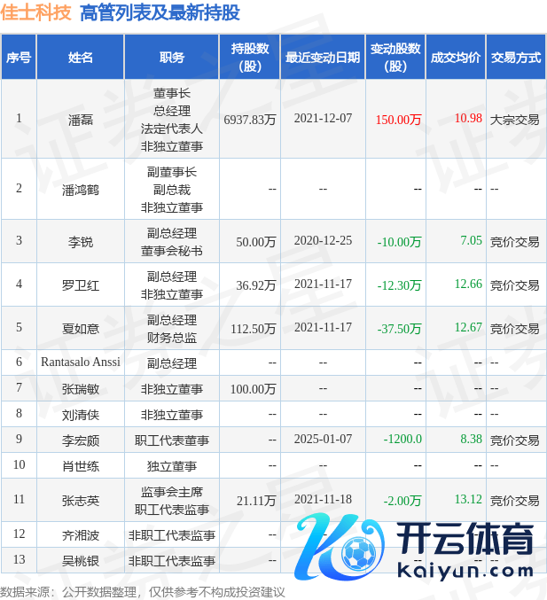 佳士科技近半年内的董监高及中枢本事东说念主员增减执深信如下: