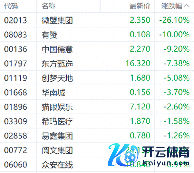 结束发稿,微盟集团(02013.HK)、有赞(08083.HK)、中国儒意(00136.HK)、东方甄选(01797.HK)差异下落26.10%、10%、7.38%。