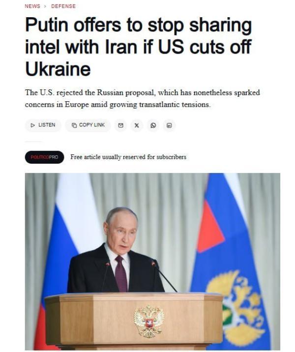 俄方在此次会谈中抛出了一个极具招引力、但也充满挟制的“交换要求”:要是好意思国住手向乌克兰提供波及俄罗斯军事动向的高价值谍报,算作交换,俄罗斯将堵截向德黑兰分享的好意思军谍报,特出是那些精准到坐见解好意思国军事能力位置信息。
