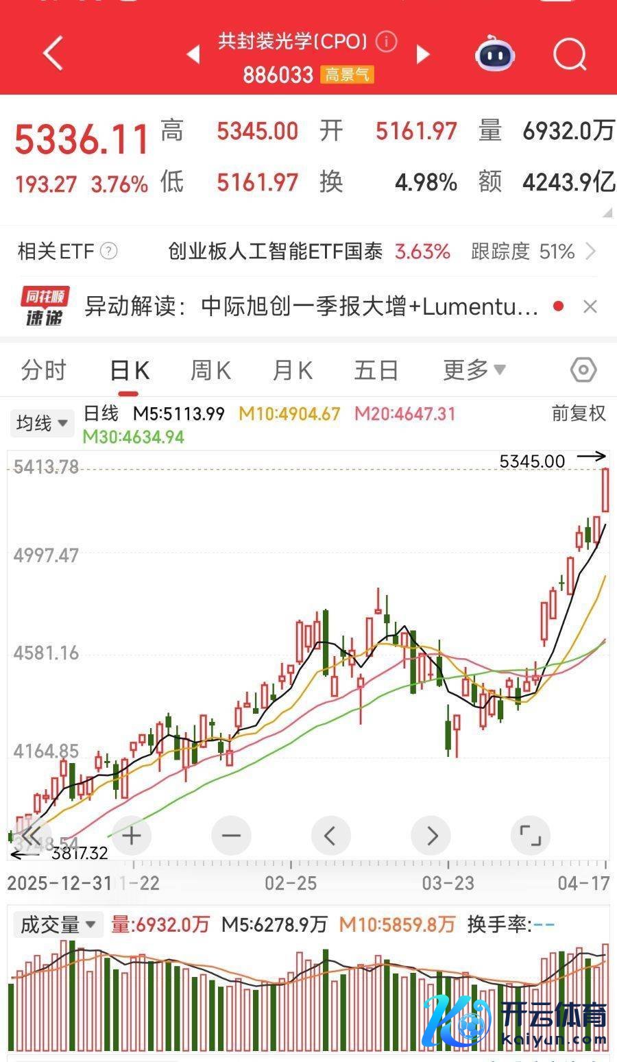 4月17日,CPO成见板块高开高走,剑桥科技、光迅科技等多股涨停,股价刷新历史新高。当日最受珍藏的,还当属股价高出茅台,成为A股新晋“股王”的源杰科技。一时候,“要站在‘光’里,不要光站在那边”的股吧“金句”再度刷屏。